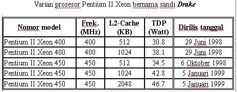 Varian-varian Pentium II Xeon bernama sandi Drake dapat dilihat pada tabel berikut: