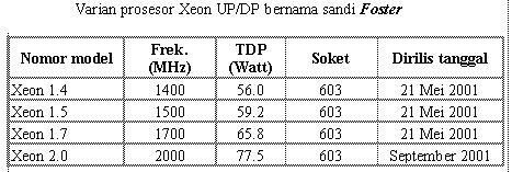 Varian prosesor Xeon MP bernama sandi Foster MP disajikan pada tabel berikut: