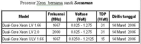 d.Prosesor Xeon bernama sandi Woodcrest (low voltage)